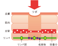 ツボは血管や神経、筋肉の上に存在しています。